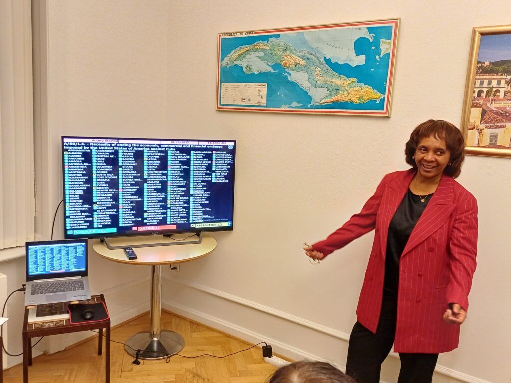 Den usikre og skærpede internationale situation med krige og rystelser af USA’s globale herredømme smitter også af på den tilbagevendende årlige debat og afstemning i FN’s generalforsamling om USA’s blokade mod Cuba. Men Cubas resolution med krav om ophævelse af blokaden blev vedtaget med et overvældende flertal.
